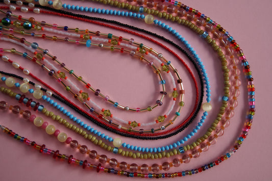 Handmade beaded jewelry, created with a variety of second-hand, vintage, new, and found beads. All of my pieces are one of a kind or small batch and meant to bring the wearer a sense of joy, nostalgia, and playfulness.
