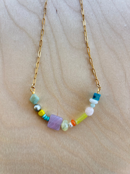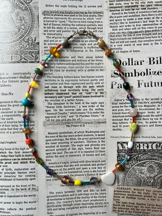 Handmade beaded jewelry, created with a variety of second-hand, vintage, new, and found beads. All of my pieces are one of a kind or small batch and meant to bring the wearer a sense of joy, nostalgia, and playfulness.