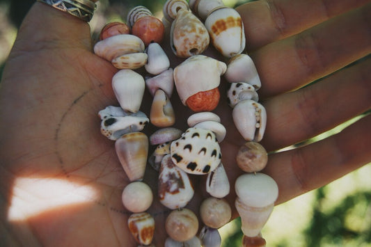 Handmade jewelry made with shells I foraged from the west coast of Hawai'i Island and beads inspired by the Island.
