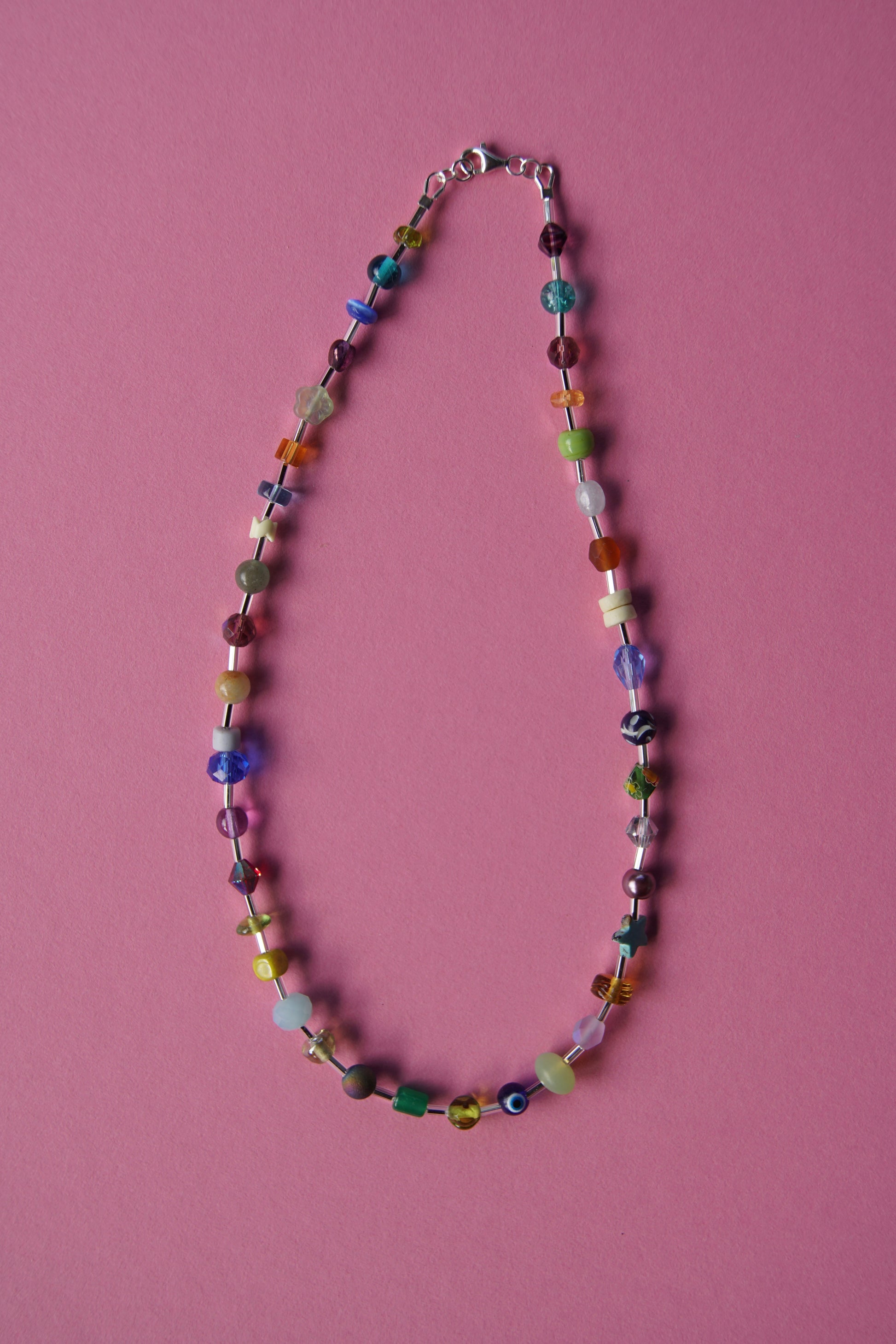 Party Down Mini necklaces are made with glass bugle beads, and various, small beads from vintage hauls, new strands, and inherited beads from friends and family. Each strand is completely unique and while they may look alike, there are no two the same.