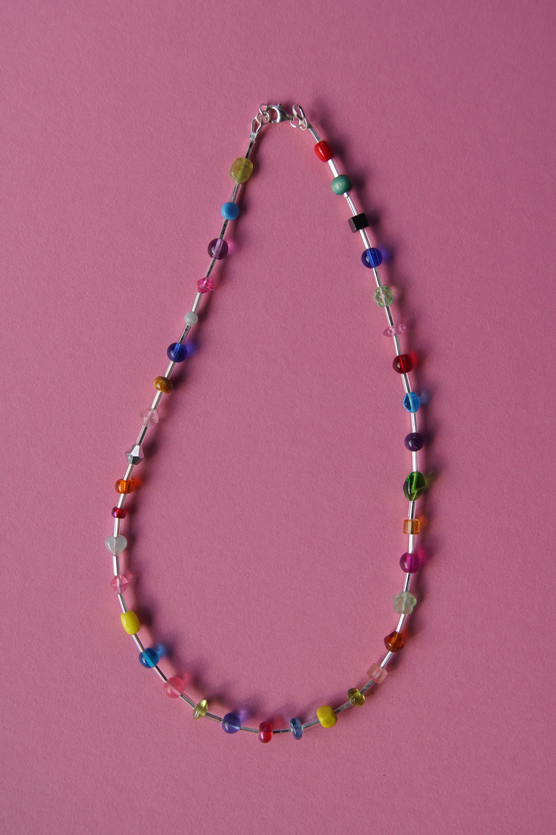 Party Down Mini necklaces are made with glass bugle beads, and various, small beads from vintage hauls, new strands, and inherited beads from friends and family. Each strand is completely unique and while they may look alike, there are no two the same.