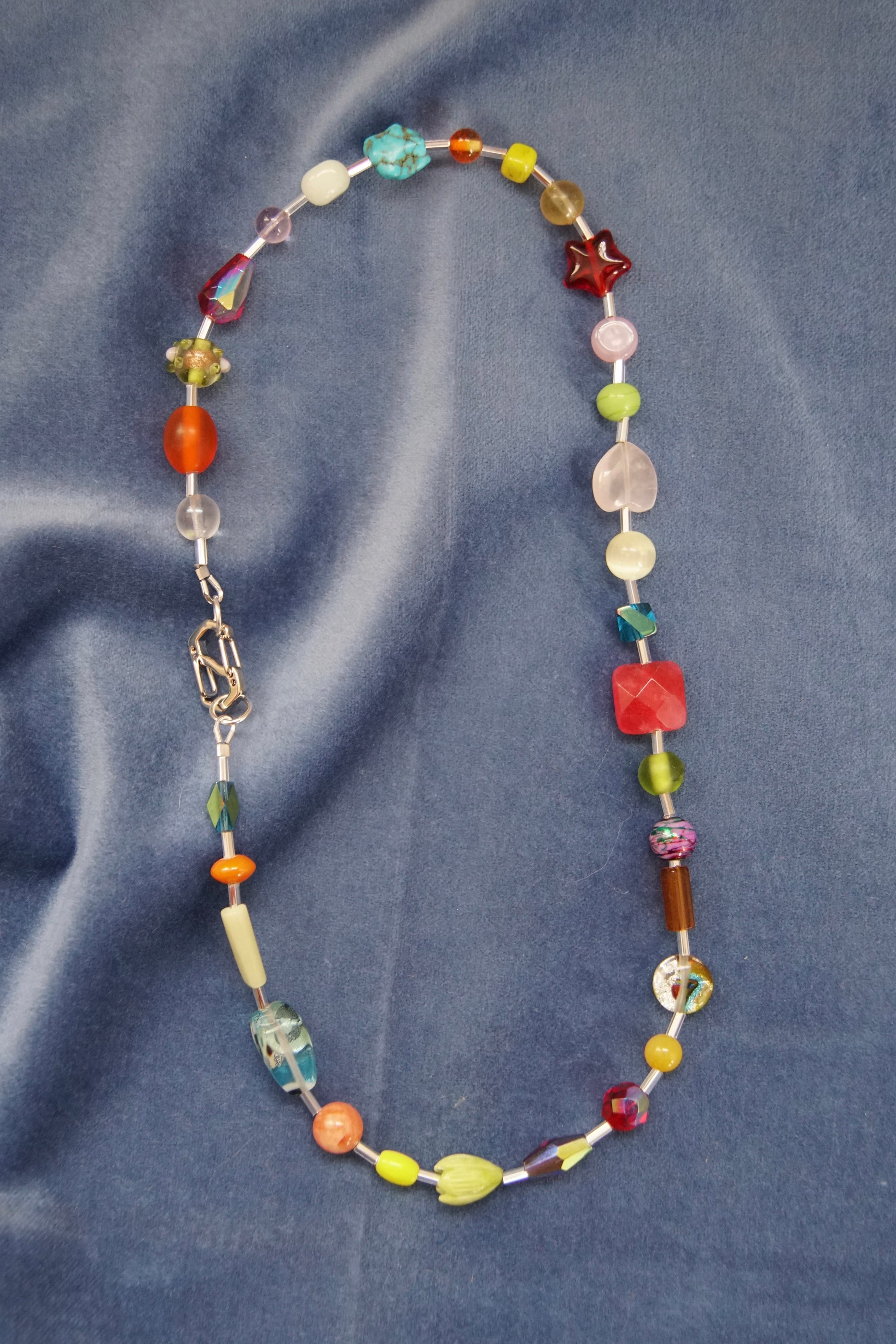 Party Down necklaces are made with glass bugle beads, and various, small beads from vintage hauls, new strands, and inherited beads from friends and family. Each strand is completely unique and while they may look alike, there are no two the same.